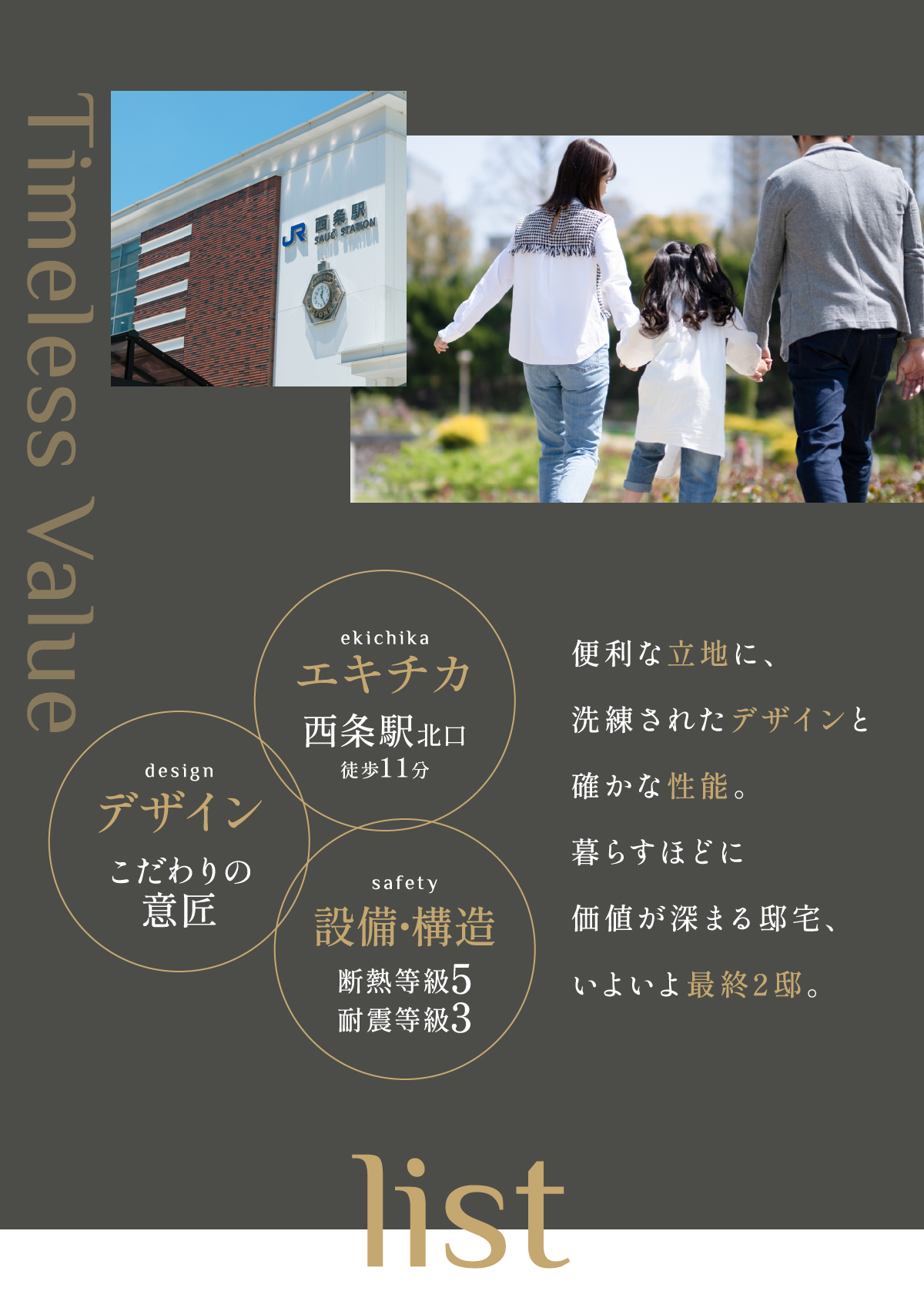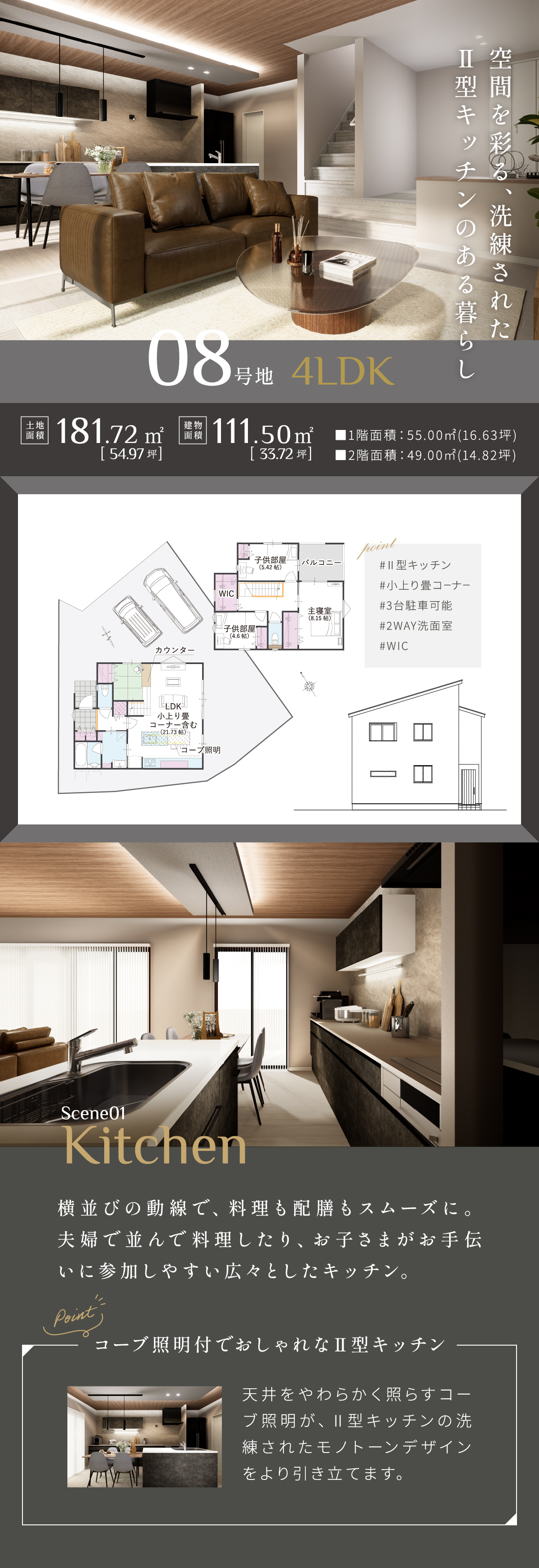 【物件概要】●所在地/東広島市西条町西条字奥田21-5(地番)他●交通/JR山陽本線「西条」徒歩約11分●総区画数/10区画●販売戸数/2区画●敷地面積/165.67~181.72㎡●建物面積/93.75~111.50㎡●販売価格/4,280万円●用途地域/市街化調整区域●開発許可番号/指令東広開指(開宅)第78号●建ぺい率/60%●容積率/200%●設備/電気(中国電力)、水道(公営)、排水(汚水・雑排水=公共下水、雨水=道路側溝へ放流)●前面道路/5号地:東側6.67~6.99m、8号地:北側6.0m●セットバック/なし●共有持分/ゴミステーション1/10づつ●構造/木造2階一戸建て(スレート葺、現場打鉄筋コンクリートベタ基礎)●建物設備/境界ブロック、フェンス、インターホン、洗面化粧台、ユニットバス、システムキッチン、3か所給湯設備(キッチン、洗面所、浴室)、フローリング床(洋室)、各所室(Wコンセント、ACコンセント、TVコンセント)、各居室網戸、電話用空配管、防腐・防蟻工事他●取引態様/売主●販売・設計・施工/ワウハウス株式会社★制震ダンパーEQガード