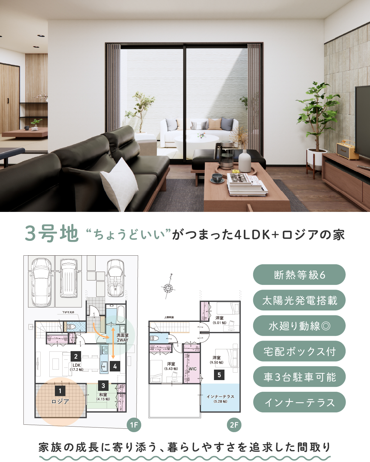 【3号地/物件概要】●所在地:姫路市大津区天満字堂ノ後●交通アクセス:山陽電鉄本線「山陽天満駅」徒歩11分●販売価格:4100万円●間取り:4LDK ●土地面積:150.46㎡●建物面積:115.17㎡●用途地域/第二種低層住居専用地域●地目/宅地●建ぺい率/60%●容積率/150%●開発許可番号/第HK25-10715号●設備/ 電気/関西電力 上水道/公営 ガス/都市ガス 下水/公共下水●取引態様/売主●販売・設計・施工/ワウハウス株式会社
