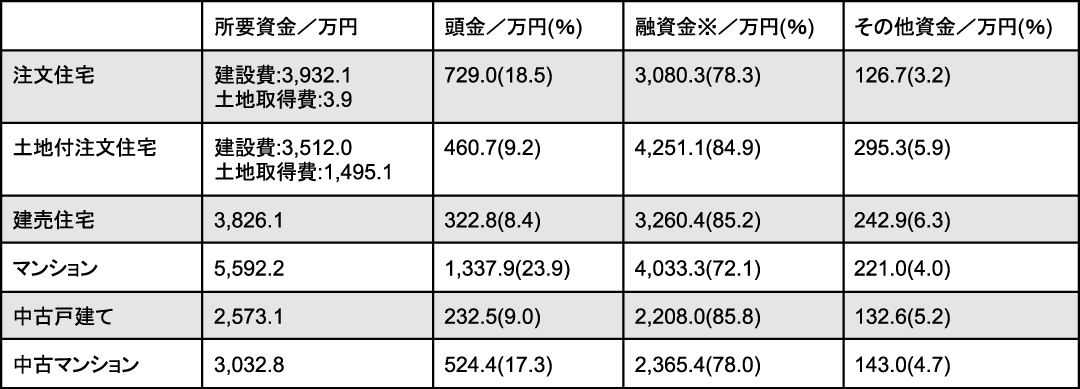取得した住宅の種類により違いはありますが、頭金は物件価格の約8〜20%程度用意されている場合が多いことが分かります。