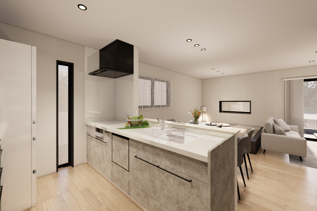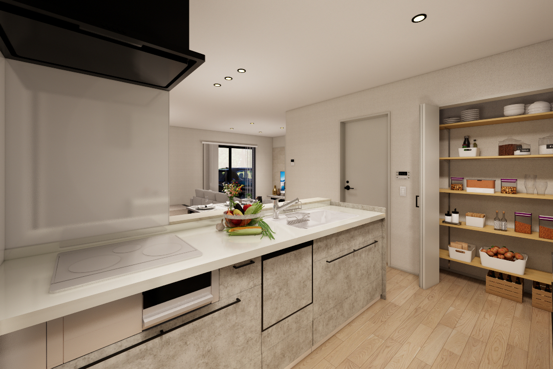 1号地…Ⅱ型キッチン/パントリーや和室、水廻り集約動線などあったら嬉しいが詰まったお家◎