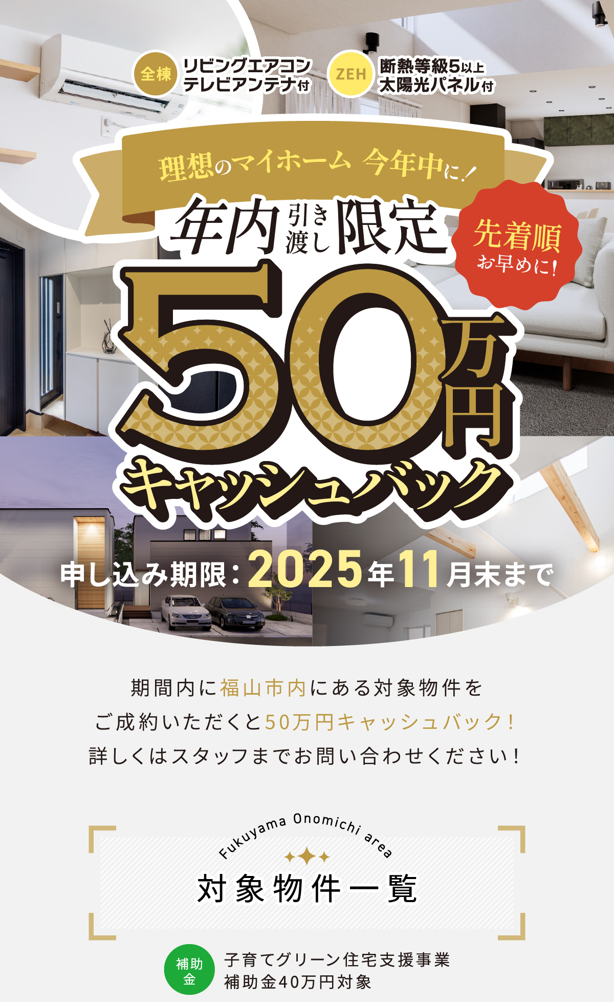 【福山】年内引き渡し限定!50万円キャッシュバック