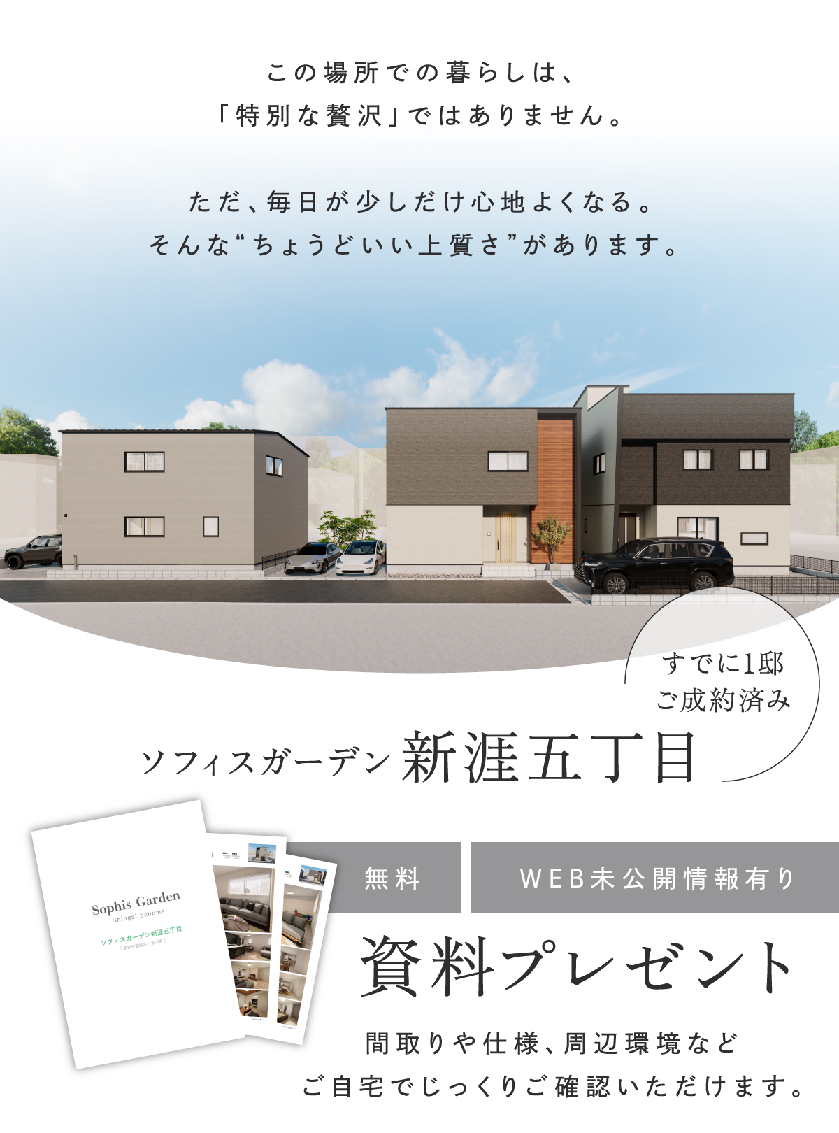 ●所在地/広島県福山市新涯町5-194番●交通/中国バス「玉屋」歩6分~7分●土地面積/120.14㎡・120.31㎡●建物面積/104.74㎡・109.64㎡●総区画数/3戸●販売戸数/2戸●販売価格/3768万円・3798万円●用途地域/第一種住居地域●建ぺい率/60%●容積率/200%●構造/木造2階建(特殊金物+軸組工法)●設備/オール電化、公営水道、公共下水●道路幅員/5m~6.4m、アスファルト舗装、私道負担あり:143.45㎡持分 1/3●建築年月/2026年5月予定●建築確認番号/第R07認福広建セ00485号他●取引態様/売主●手付金等の保証期間/株式会社広島銀行※火災保険、登記費用などの諸費用は別途申し受けます。詳しくは係員までお問い合わせください。●販売・設計・施工/ワウハウス株式会社