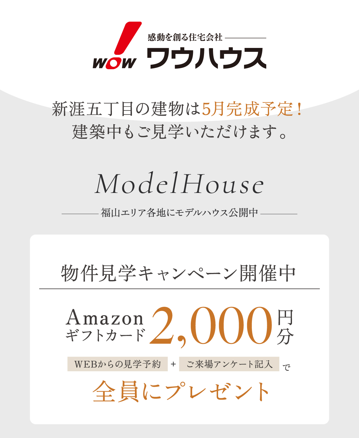 【ギフトカード特典対象となる方】はじめてワウハウスの店舗および物件にご来場される方で、ご来場アンケートにご協力いただける方のみ対象です。※ご家族1組につき、1回限りとさせていただきます。※複数物件へご来場いただいた場合でも、ご来場プレゼントは1回限りの進呈とさせていただきます。※電話やポータルサイト等、公式サイトの予約フォーム以外からのご予約は対象外となります。※本特典はワウハウスによる提供です。本特典についてのお問い合わせはAmazonではお受けしておりません。※Amazon、Amazon.co.jpおよびそれらのロゴはAmazon.com, Inc. またはその関連会社の商標です。