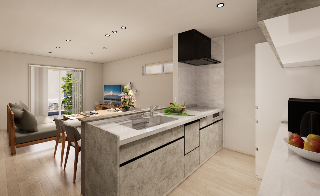 キッチン・洗面・浴室・ランドリーをまとめた「家事ラク動線」は、共働きや子育て世帯に最適。移動ロスが減り、料理をしながら洗濯や入浴準備など“ながら家事”がしやすく、家事の並列化で時短に繋がります。さらに給湯配管が短くなり、省エネ効果も期待できます。