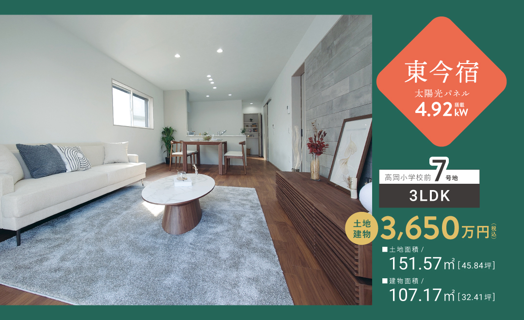 【高岡小学校前】●所在地/姫路市東今宿6丁目●交通/JR姫新線「播磨高岡駅」徒歩12分、神姫バス「今宿」停徒歩9分●団地設備/電気(関西電力)、水道(公営)、排水(汚水・雑排水=公共下水、雨水=道路側溝へ放流)●団地総面積・総区画数1,323.61㎡・9区画●私道負担なし●地目/宅地●用途地域/第一種中高層住居専用地●建ぺい率/60%●容積率/200%●造成工事/完了済み●手付金等の保証機関/株式会社広島銀行●取引態様/売主●分譲住宅販売戸数/3戸(7号地モデルハウス)●構造/木造2階一戸建住宅(ガルバリウム葺/現場打ち鉄筋コンクリートベタ基礎/電化住宅)●建物設備/境界ブロック・フェンス(道路面除く)、Low-E複層ガラス、TVインターホン、洗面化粧台、ユニットバス、システムキッチン、3カ所給湯設備(台所、洗面、浴室)、フローリング床(廊下、洋室、リビング、ダイニング)、各居室コンセント、ACコンセント、TVコンセント、電話用空配管、防腐・防蟻工事他●7号地:3,650万円(税込/3LDK/延床面積107.17㎡/土地面積151.57㎡/2024年11月完成済)