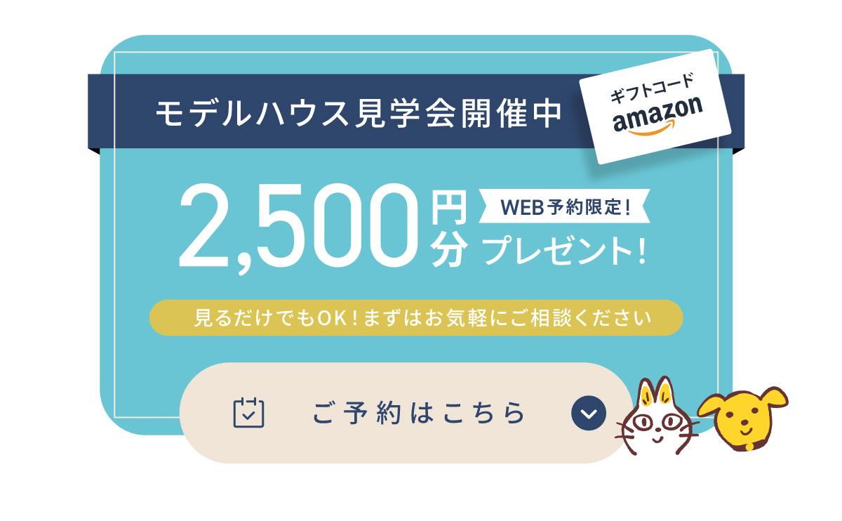 【Amazonギフト対象となる方】 はじめてワウハウスの店舗および物件にご来場される方で、ご来場アンケートにご協力いただける方のみ対象です。 ※同居のご家族1組につき、1回限りとさせていただきます。 ※複数物件へご来場いただいた場合でも、ご来場プレゼントは1回限りの進呈とさせていただきます。 ※お電話やポータルサイト等、公式サイトの予約フォーム以外からのご予約は対象外となります。 ※本特典はワウハウスによる提供です。本特典についてのお問い合わせはAmazonではお受けしておりません。 ※Amazon、Amazon.co.jpおよびそれらのロゴはAmazon.com, Inc. またはその関連会社の商標です。