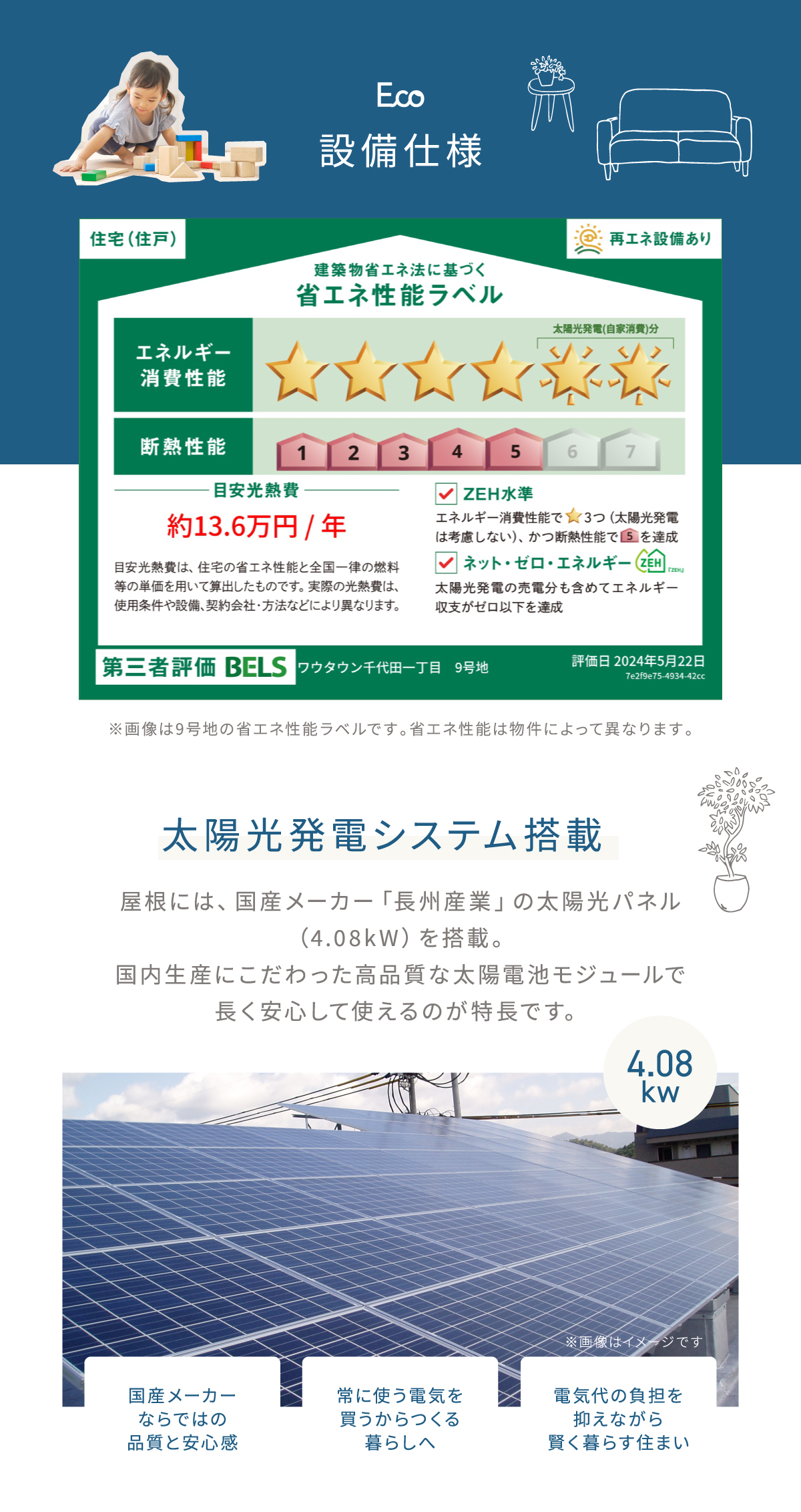 【分譲概要】●所在地/広島県福山市千代田町1-115番●交通/JR山陽本線「福山」歩44分~45分/中国バス「西川口下」歩4分~5分●土地面積/147.02㎡~151.17㎡●建物面積/105.37㎡~108㎡●総区画数/11区画●販売戸数/2戸●販売価格/3660万円~3698万円●用途地域/第1種住居地域●建ぺい率/60%●容積率/200%●構造/木造2階建●設備/オール電化●道路幅員/道路幅:5m~7m、アスファルト舗装、私道負担・105.33m2持分1/4(1~4号地)・134.66m2持分1/3(9~10号地)●建築年月/2025年6月●建築確認番号/第HP15-3786617号他●取引態様/売主●販売・設計・施工/ワウハウス株式会社