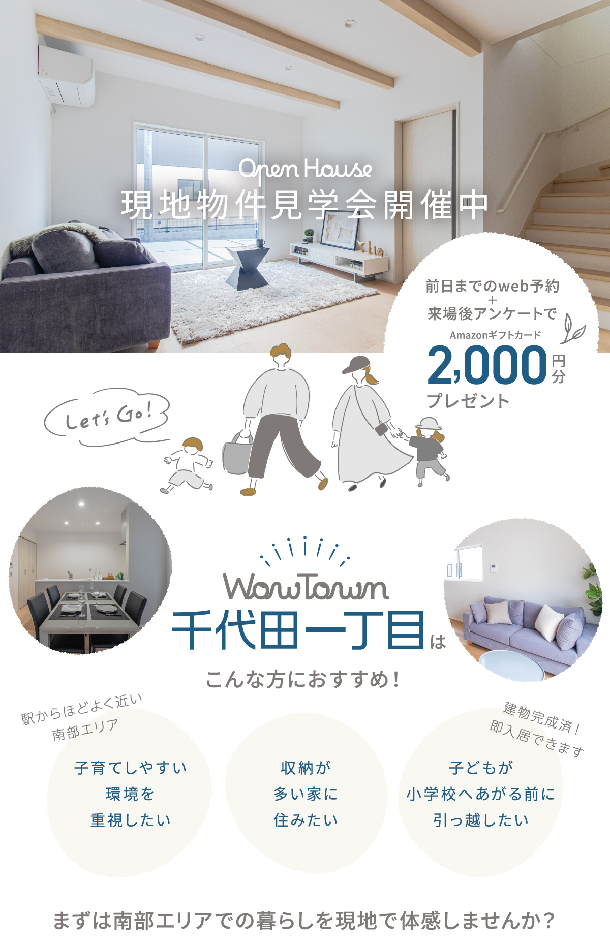 【Amazonギフトカードプレゼントについて】対象となる方:はじめてワウハウスの店舗および物件にご来場される方で、ご来場アンケートにご協力いただける方のみ対象です。 ※同居のご家族1組につき、1回限りとさせていただきます。 ※複数物件へご来場いただいた場合でも、ご来場プレゼントは1回限りの進呈とさせていただきます。 ※お電話やポータルサイト等、公式サイトの予約フォーム以外からのご予約は対象外となります。 ※本特典はワウハウスによる提供です。本特典についてのお問い合わせはAmazonではお受けしておりません。 ※Amazon、Amazon.co.jpおよびそれらのロゴはAmazon.com, Inc. またはその関連会社の商標です。