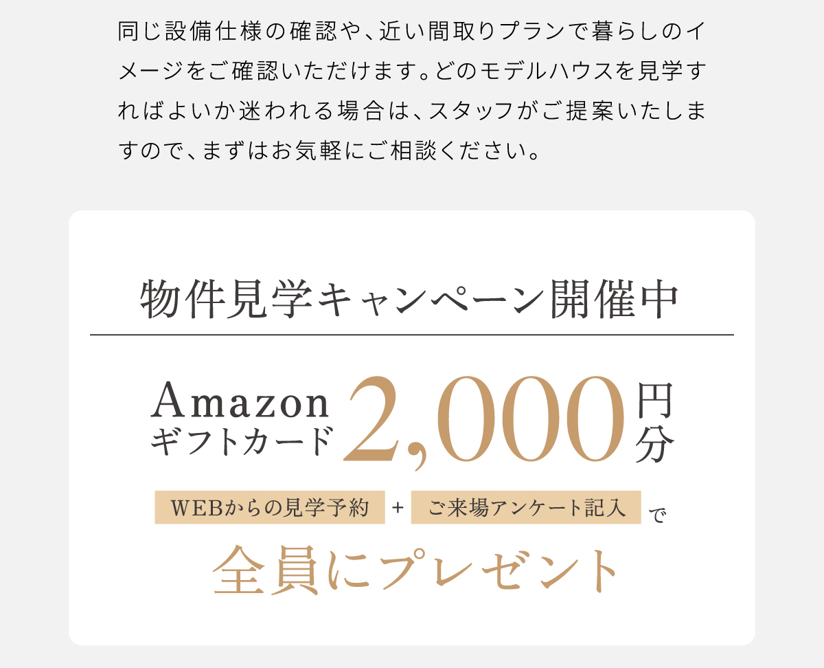 【ギフトカード特典対象となる方】はじめてワウハウスの店舗および物件にご来場される方で、ご来場アンケートにご協力いただける方のみ対象です。※ご家族1組につき、1回限りとさせていただきます。※複数物件へご来場いただいた場合でも、ご来場プレゼントは1回限りの進呈とさせていただきます。※電話やポータルサイト等、公式サイトの予約フォーム以外からのご予約は対象外となります。※本特典はワウハウスによる提供です。本特典についてのお問い合わせはAmazonではお受けしておりません。※Amazon、Amazon.co.jpおよびそれらのロゴはAmazon.com, Inc. またはその関連会社の商標です。
