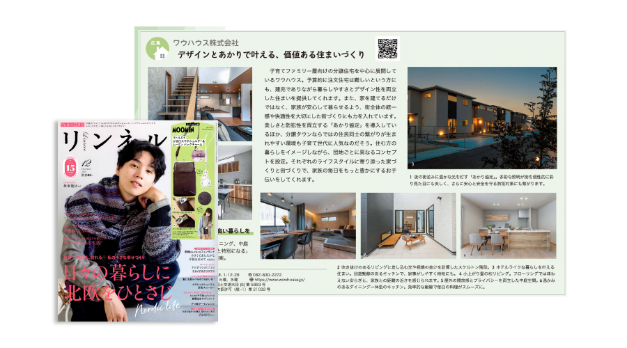 このたび、宝島社が発行する全国誌『リンネル』2025年12月号の「豊かな暮らしが叶う住まい特集」に、ワウハウスの住まいが掲載されました。