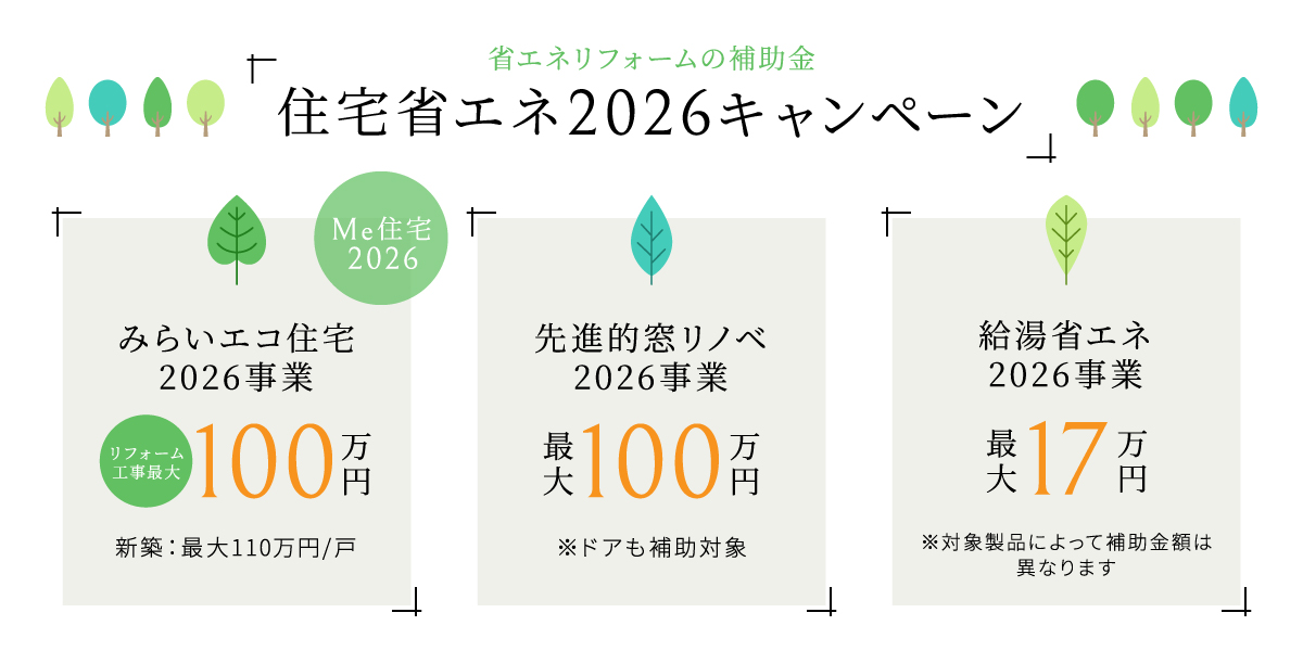 ◆住宅省エネ2026キャンペーンの補助金制度一覧